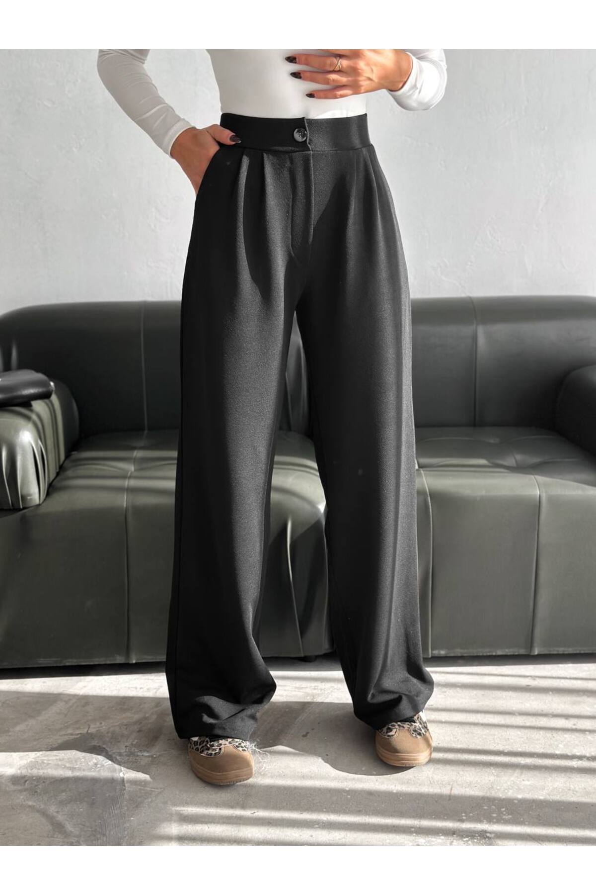 b buhari bykoc Palazzo Pants with Wide Legs and Elastic Waist with Buttons