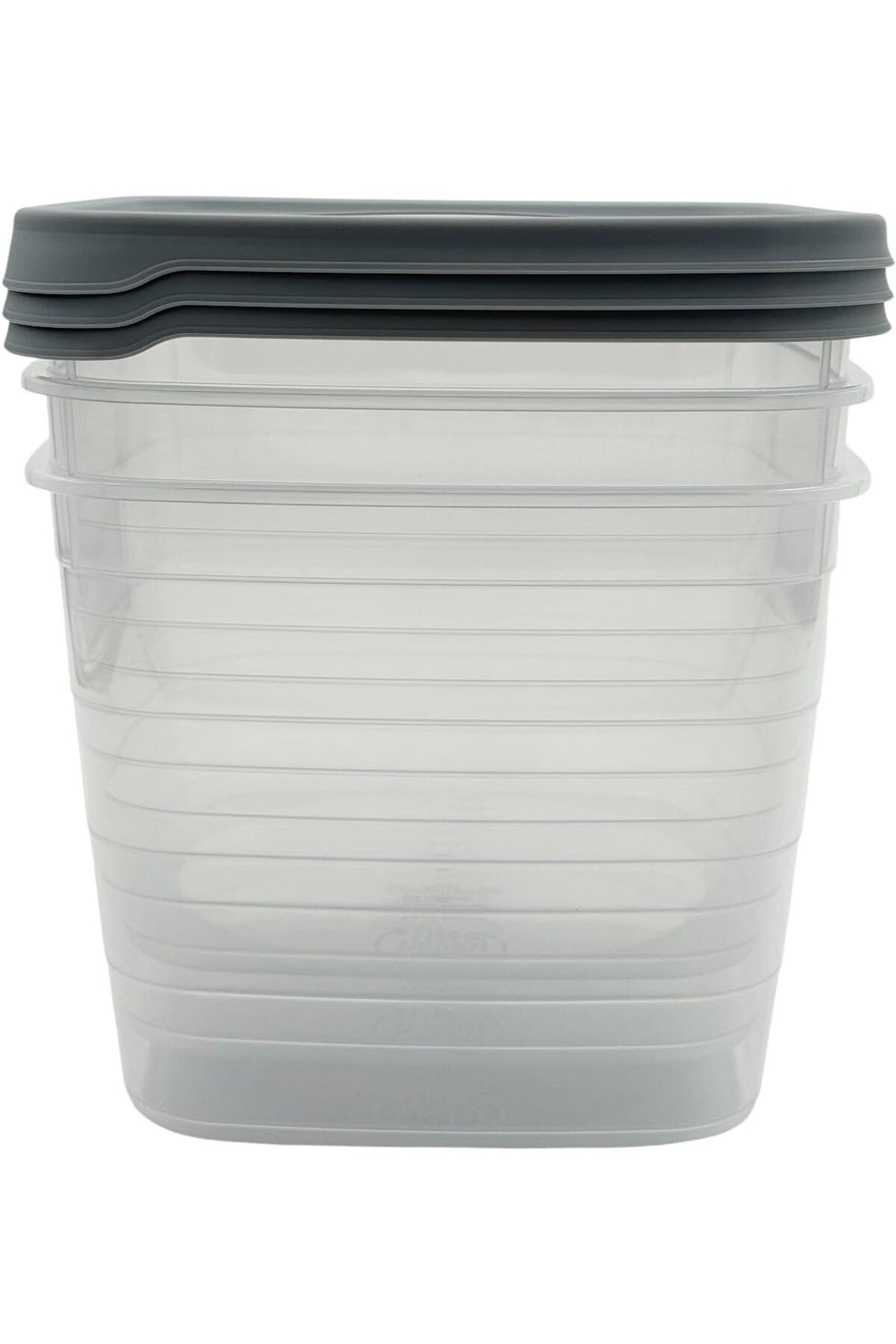 B&D Multi-Purpose Stackable Storage Containers with Lids, Clear/Grey, 5.1L, Set of 3 features