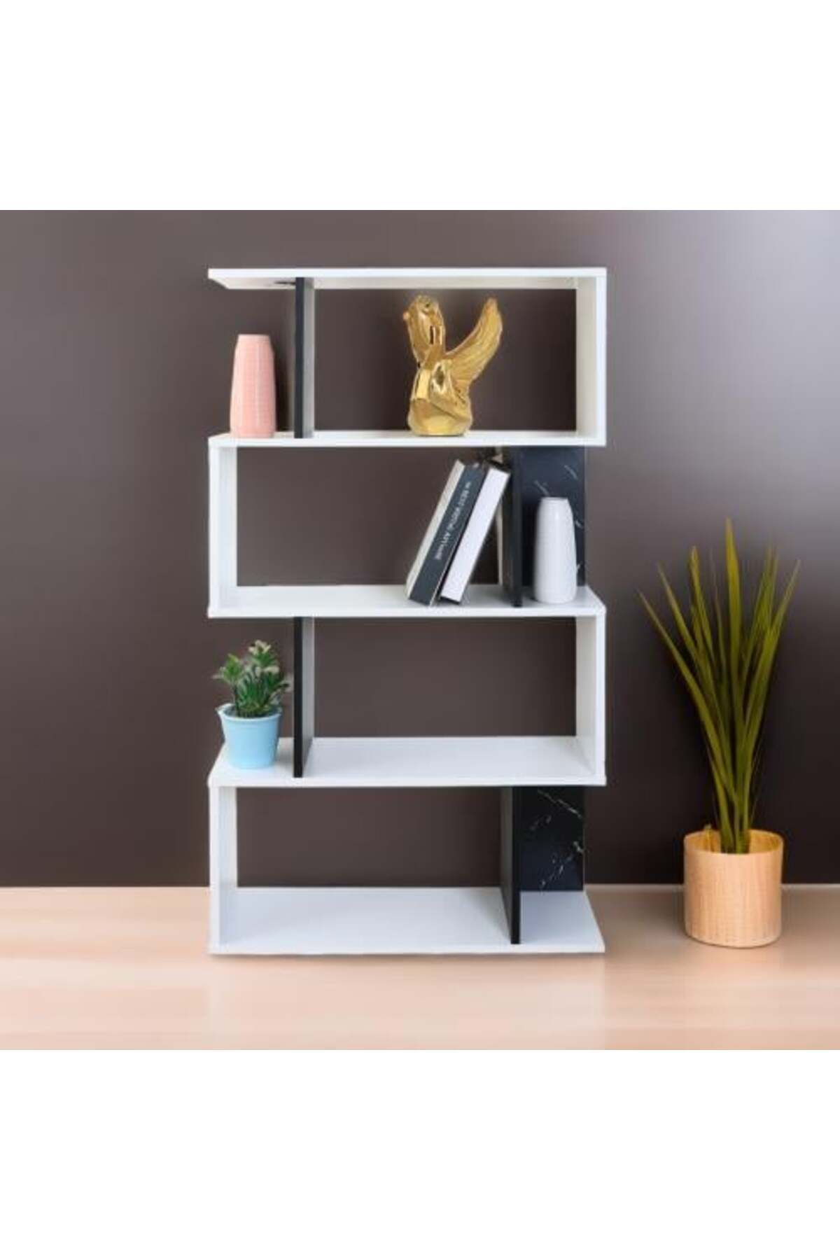 BAITY Open Shelf Unit 4 Levels - Malaysian Wood - White and Black Marble
