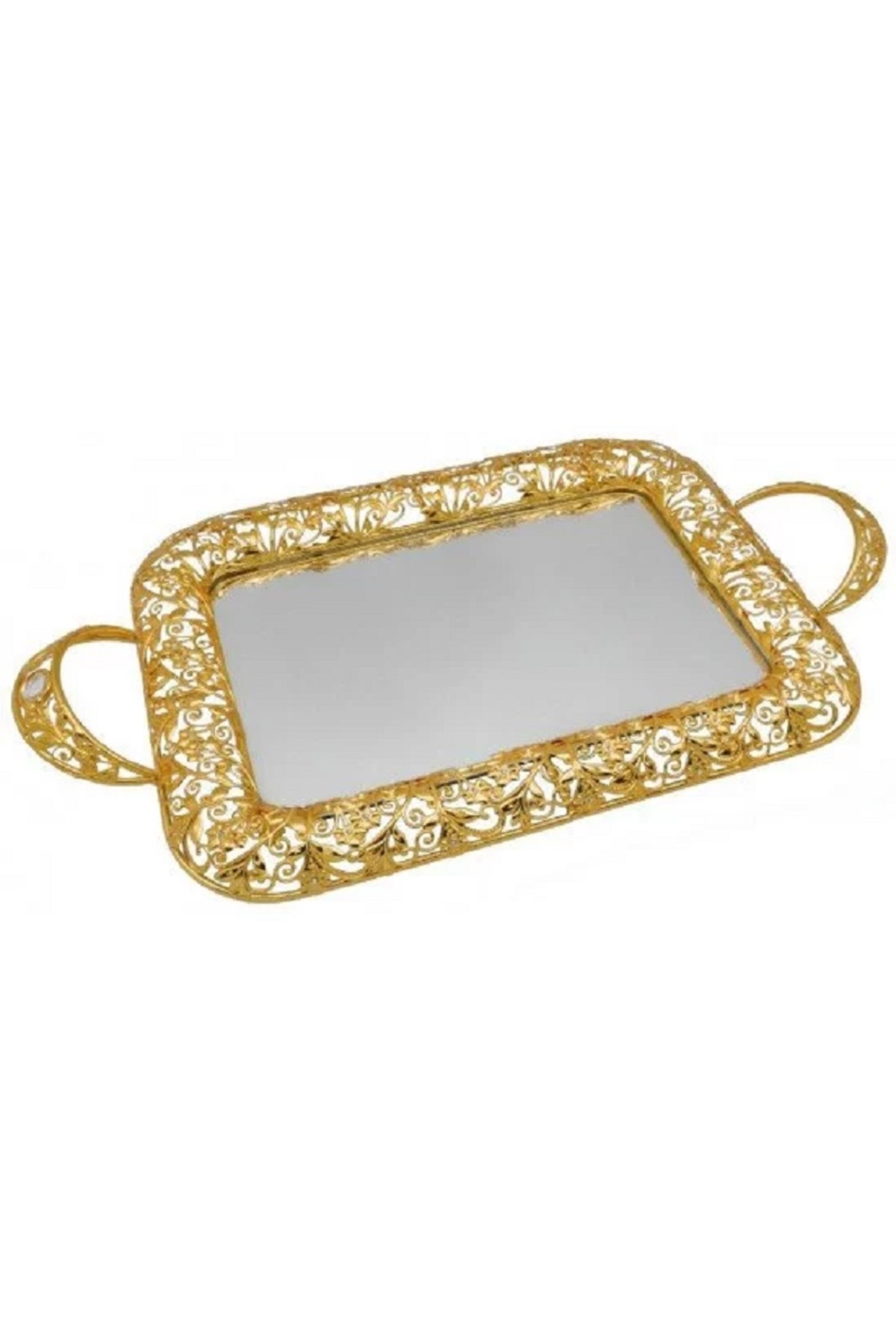 BASURRAH Medium rectangular golden mirror serving tray features