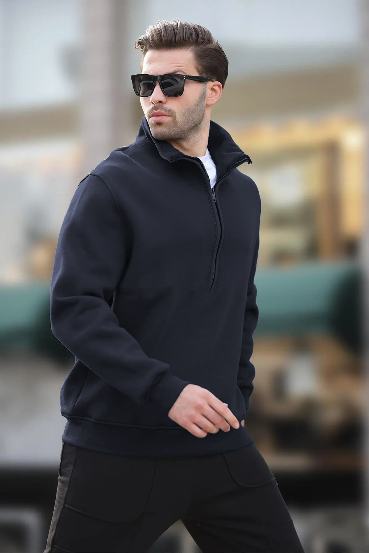 BayBayan Men's Basic Half Zipper Premium Model Sweatshirt features
