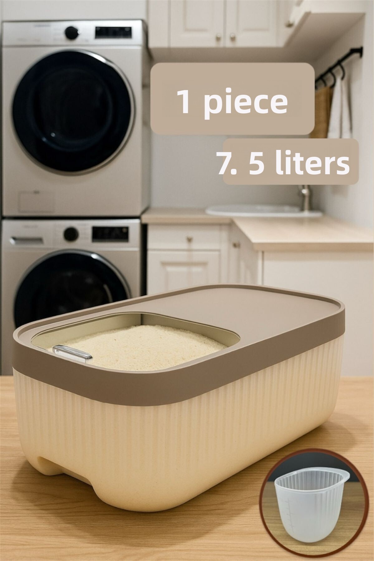 Bayev 1 Piece Apex Cream 7.5 Lt Detergent Container with Sliding Lid - Wheeled Food Storage Box with Scale