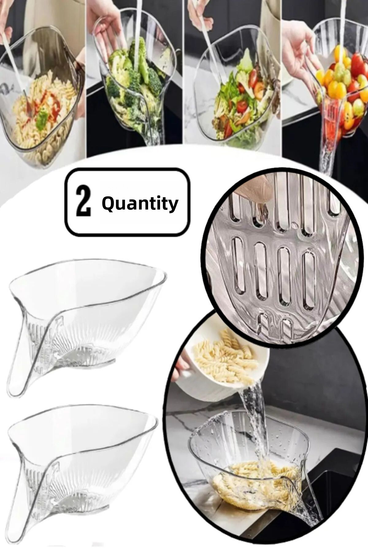 Bayev 2 Pieces Practical Kitchen Strainer Fruit Vegetable Washing Straining Strainer