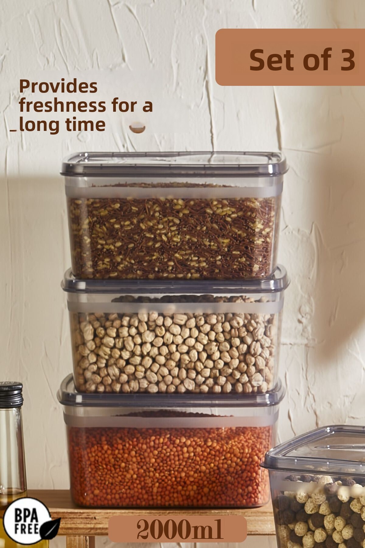 Bayev 3 Pieces Huge Smoked 2 LT Food Storage Container - Lid Pulses Box - Suitable for Deep Freezer features