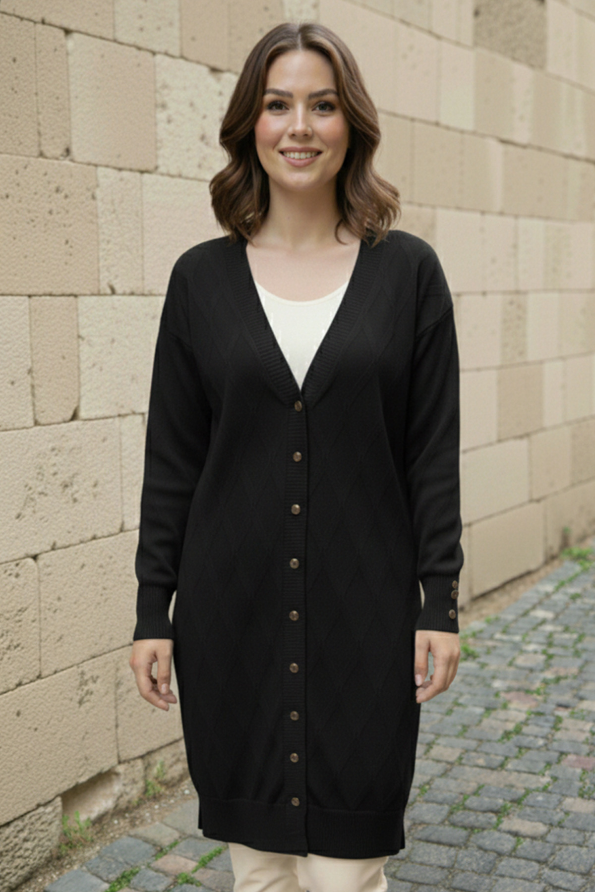benguen Patterned Cardigan N3290 Black features