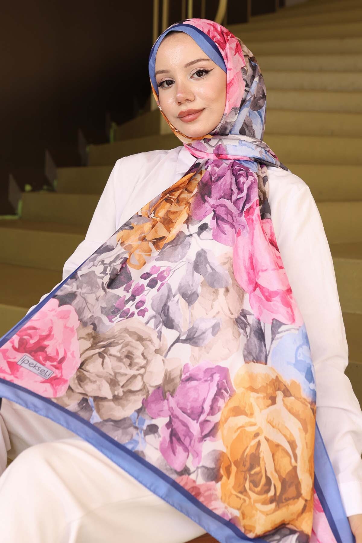 benguen Patterned Shawl Indigo İpk111 features