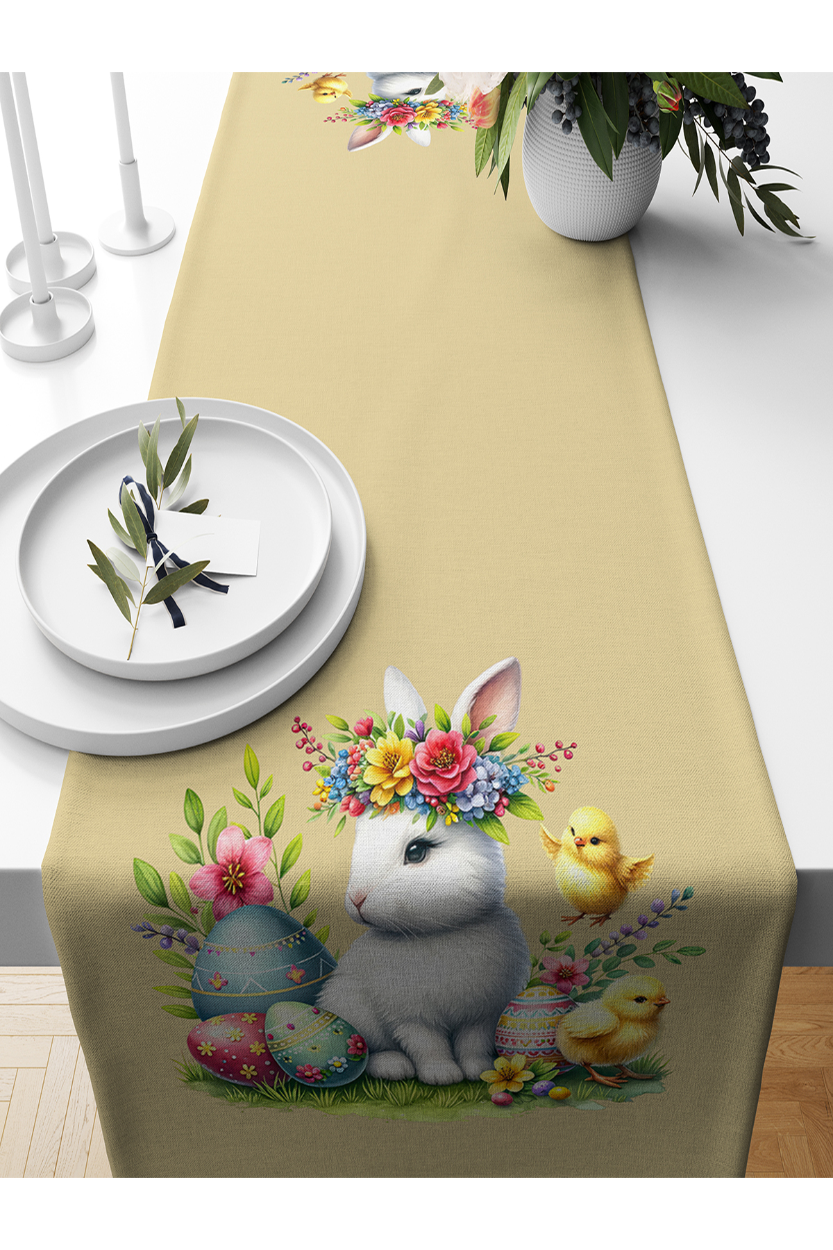 Bertille Home Spring Series 140X40 cm Digital Printed Runner (Spring Easter Easter) features