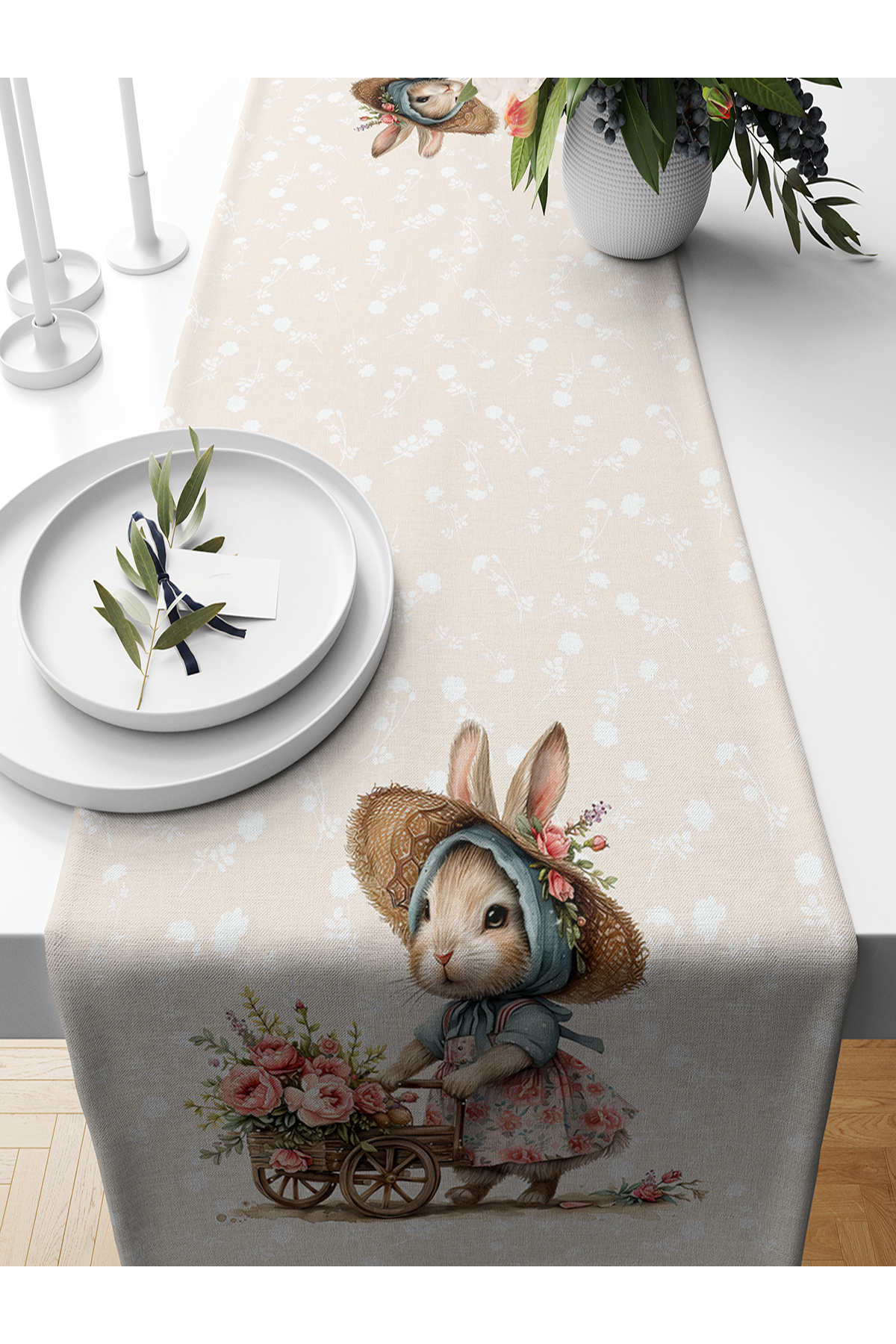 Bertille Home Spring Series 140X40 cm Digital Printed Runner (Spring Easter Easter) features