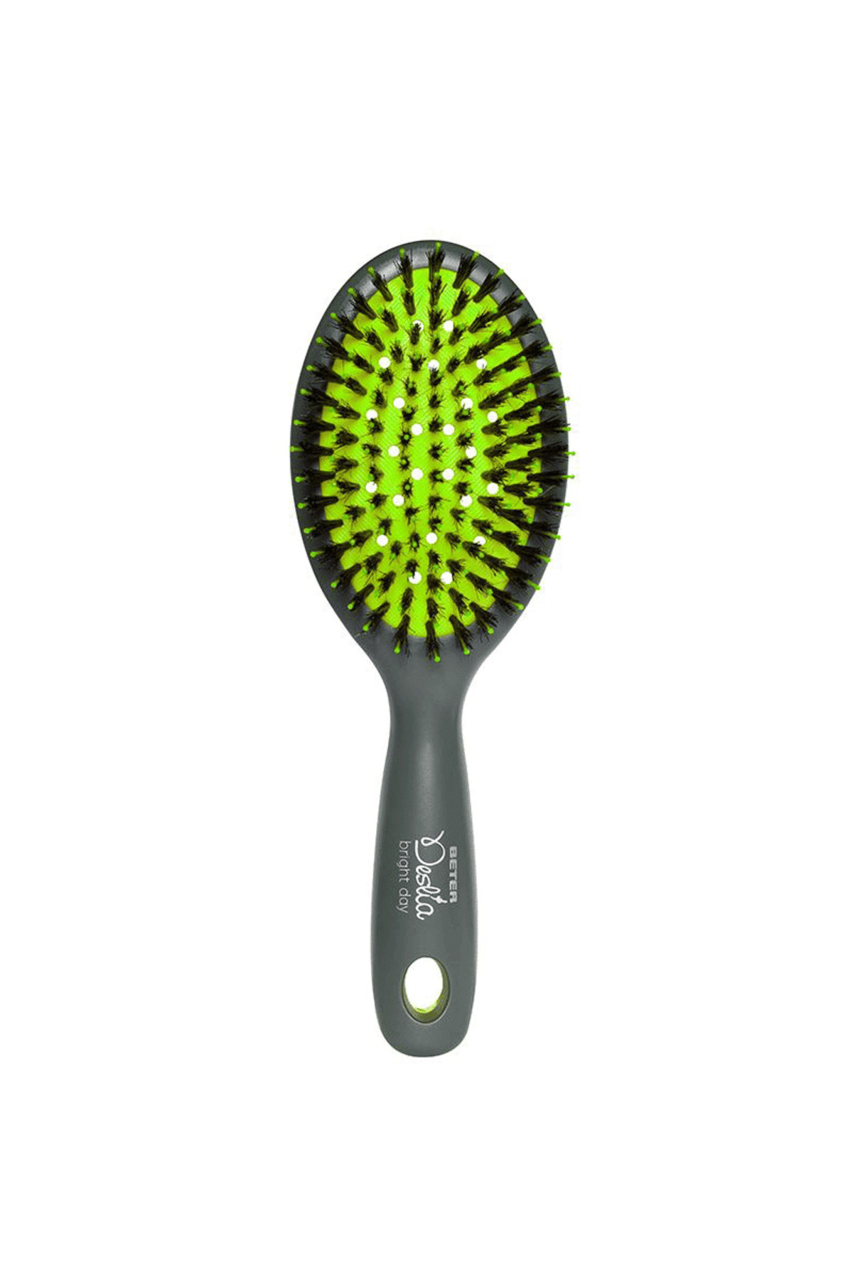 Pneumatic brush detangles and styles hair, leaving it shiny and silky. TPE cushion: flexible base with holes to allow maximum airflow. Boar bristles: give hair an extraordinary natural shine. Brushing distributes the natural oils produced by the scalp from root to tip. Flexible nylon bristles: glide smoothly, without pulling or frizz, protecting the hair cuticles and preventing hair loss.