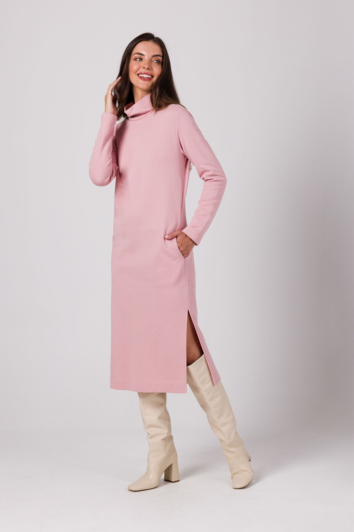 BEWEAR Simple midi dress with a mock turtleneck