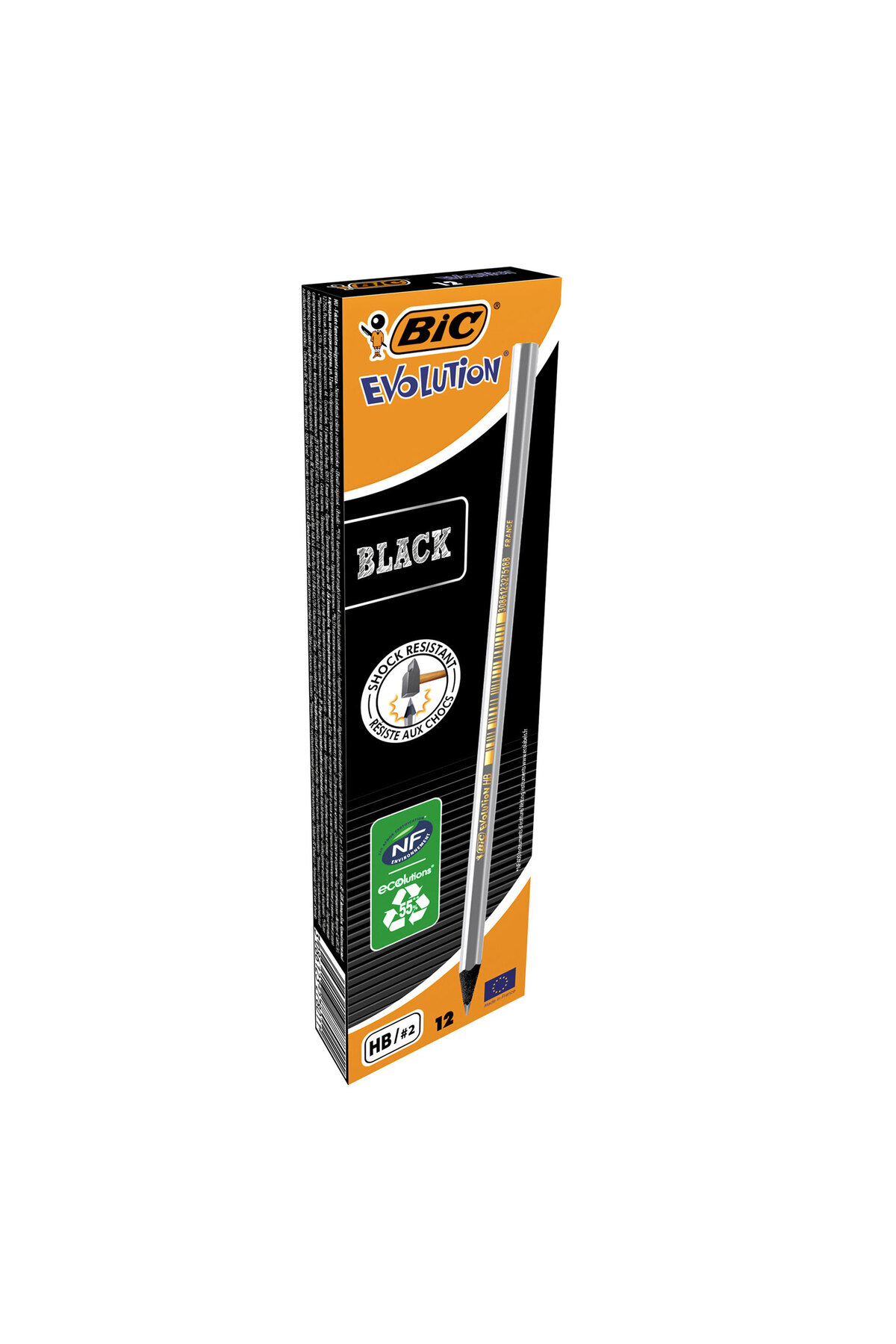 Bic Graphite Pencil HB Without Eraser Evolution Black 12/Box features