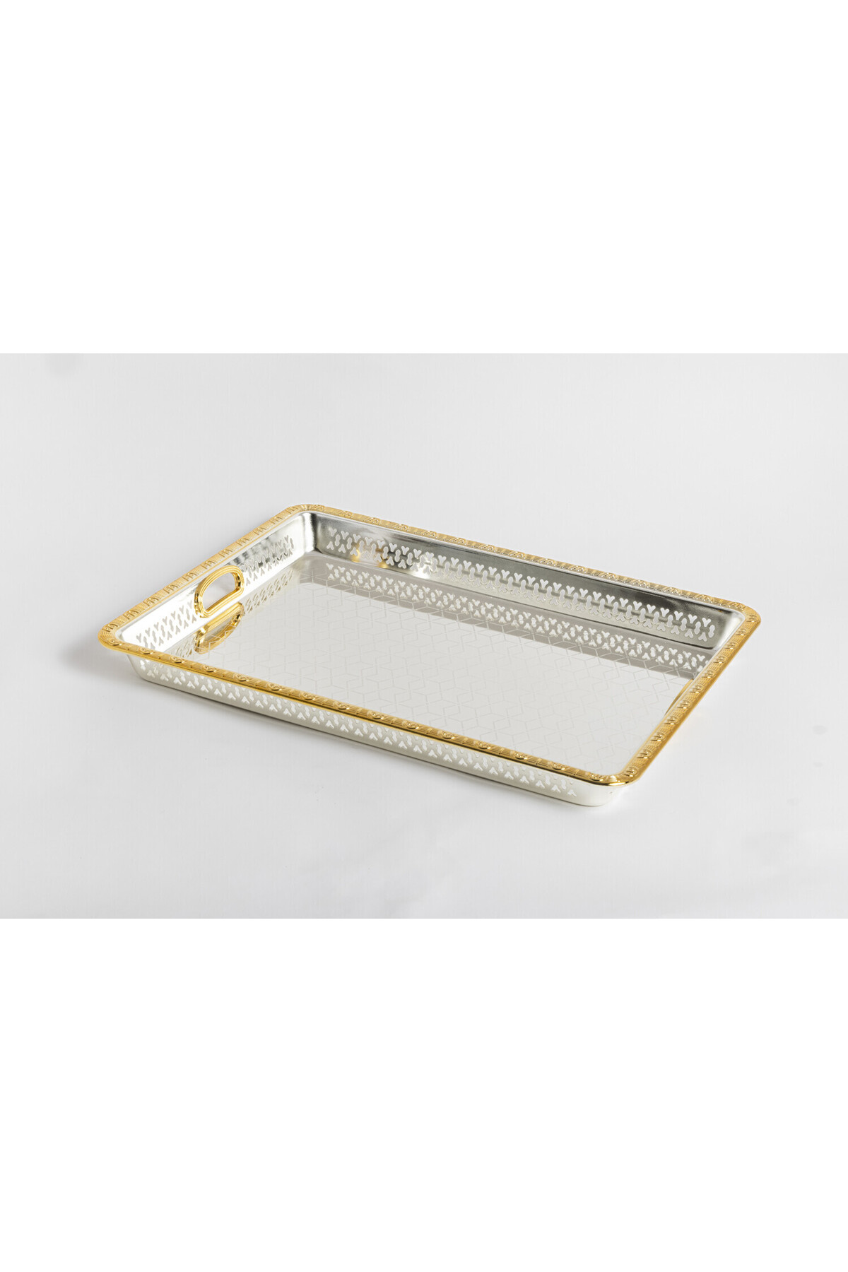 Bin Shihoun Silver and gold rectangular serving tray features