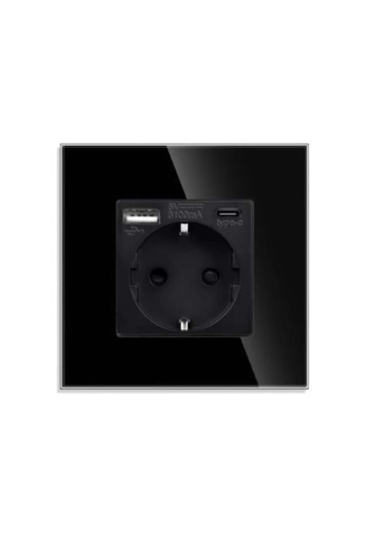 Bingoelec Complete Shuko Socket, USB A+C Port 3.1A, 20W, Fast Charge with Intelligent Recognition, Glass Frame