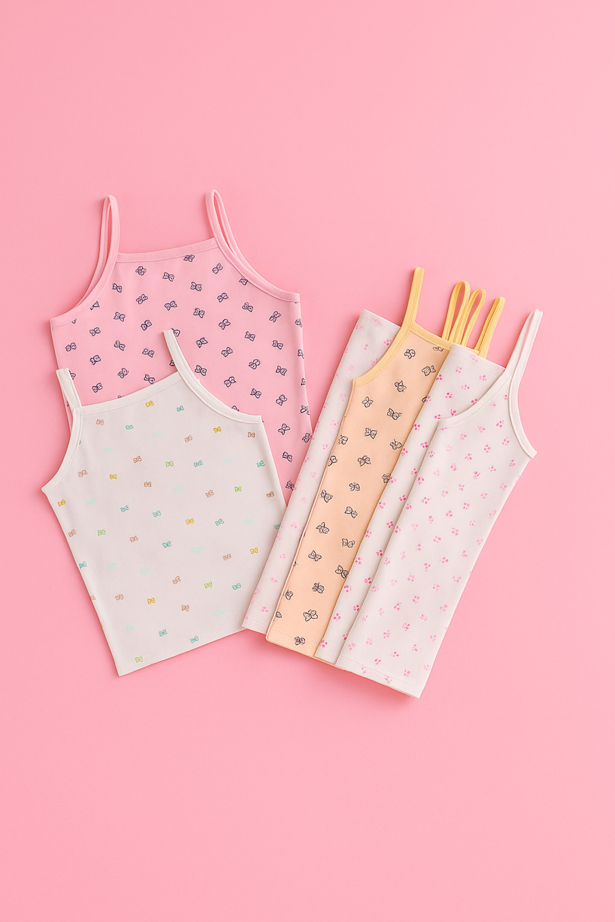 BONY SOCKS Girl's Patterned Thin Strap Undershirt Multicolored