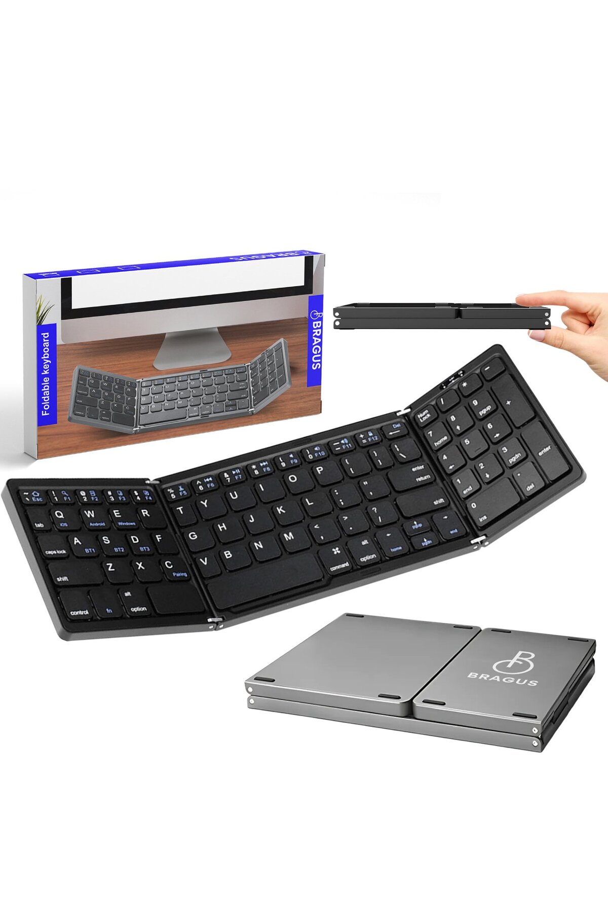 BRAGUS Ultra-thin foldable keyboard, compatible with Android, iOS, Smart TV, numeric keypad, black features
