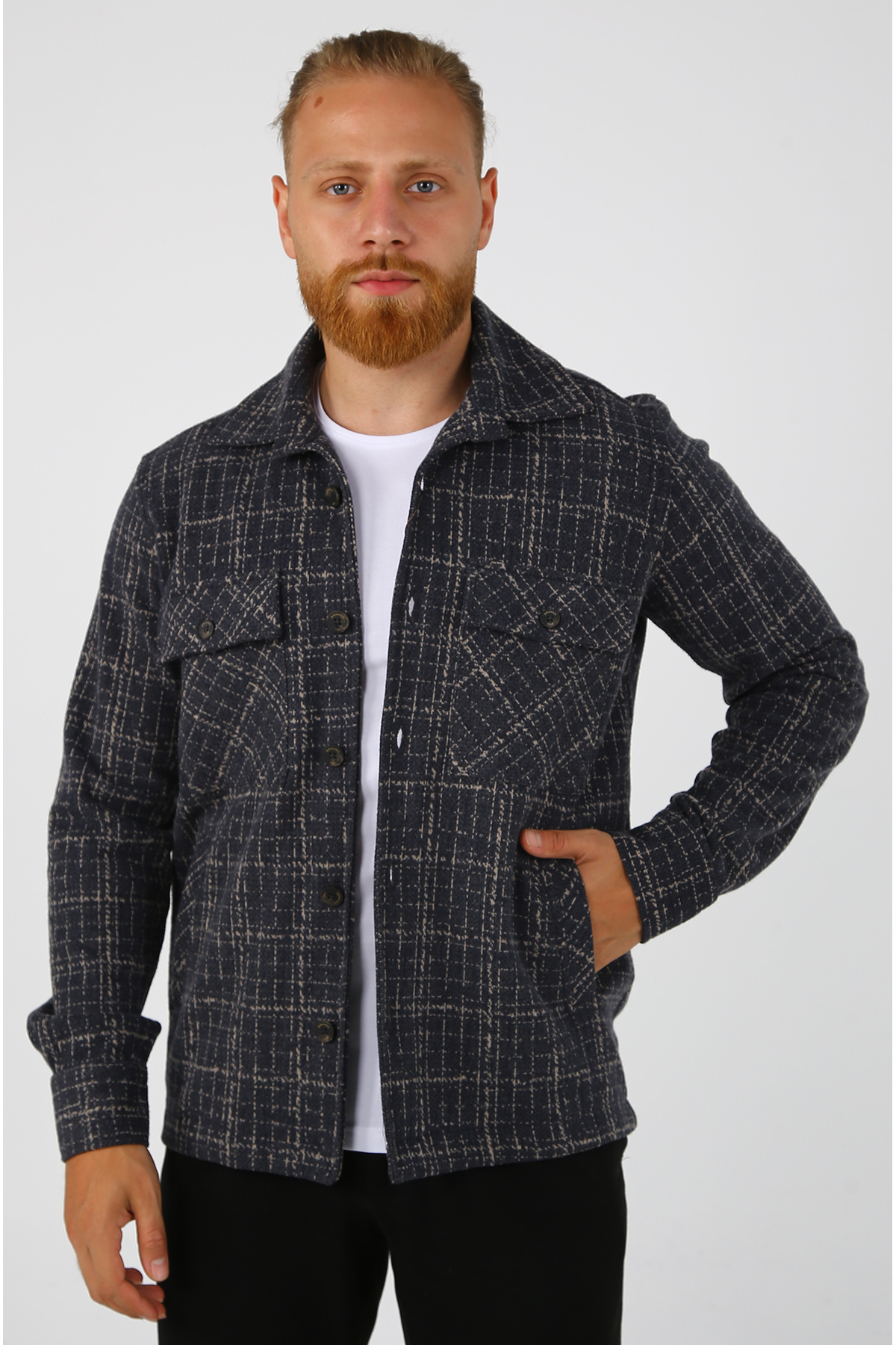 BRAN Men's Patterned Shirt Jacket features