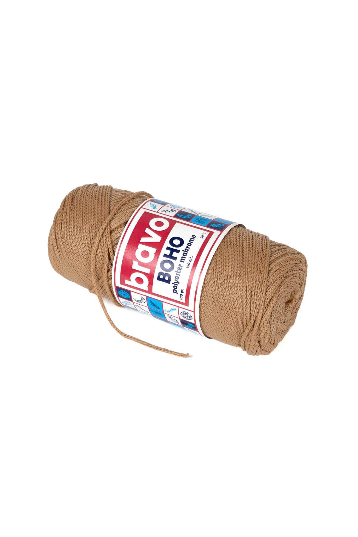 Bravo Boho Polyester Macrame Yarn 1.5 mm 100 Gr 150 Meters No: 3 mm (Color Code: 32) Camel features