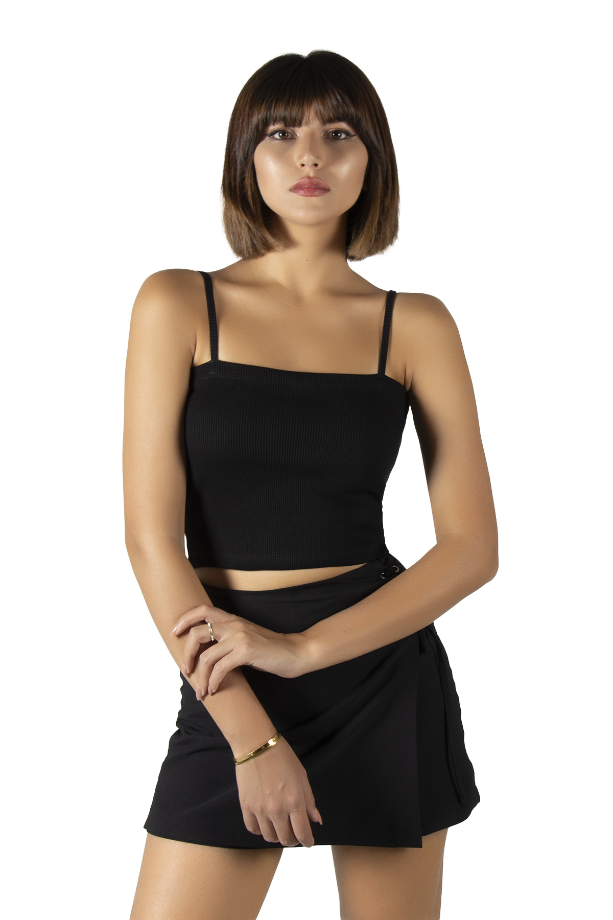 BUCADO Black Rope Strap Fitted Crop Top Undershirt features