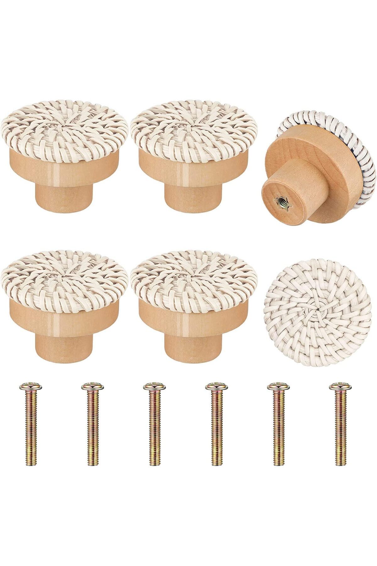 Bukela Wooden Drawer Knobs, Rattan Dresser Knobs