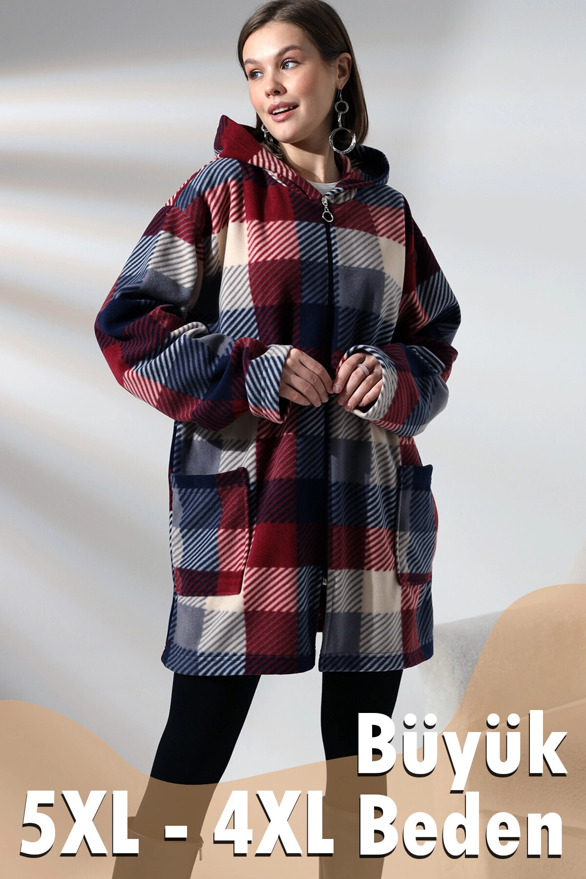 Buklemoda Plaid Pattern Fleece Jacket features