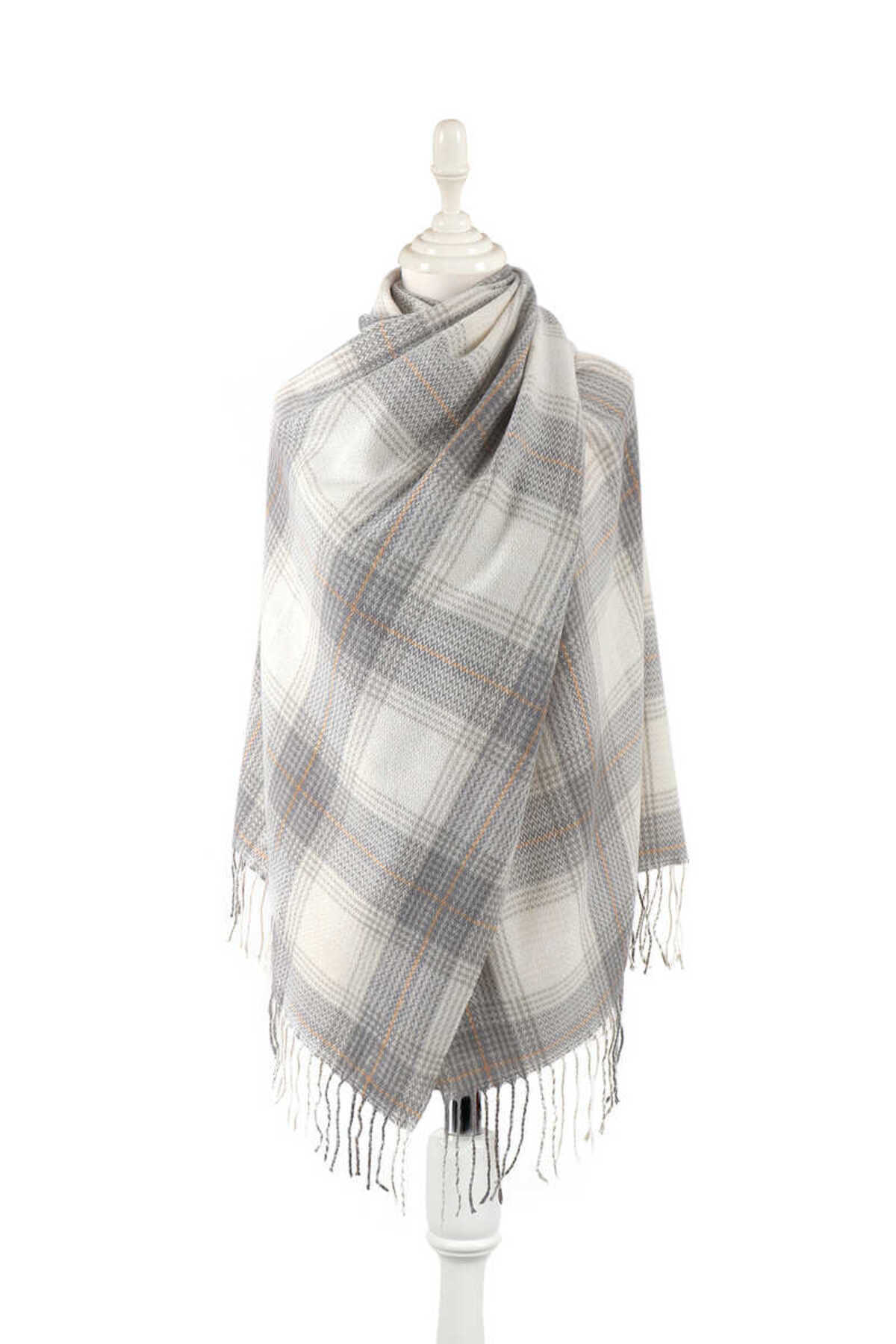 Bursa İpek Ecru Gray Patterned Winter Shawl features