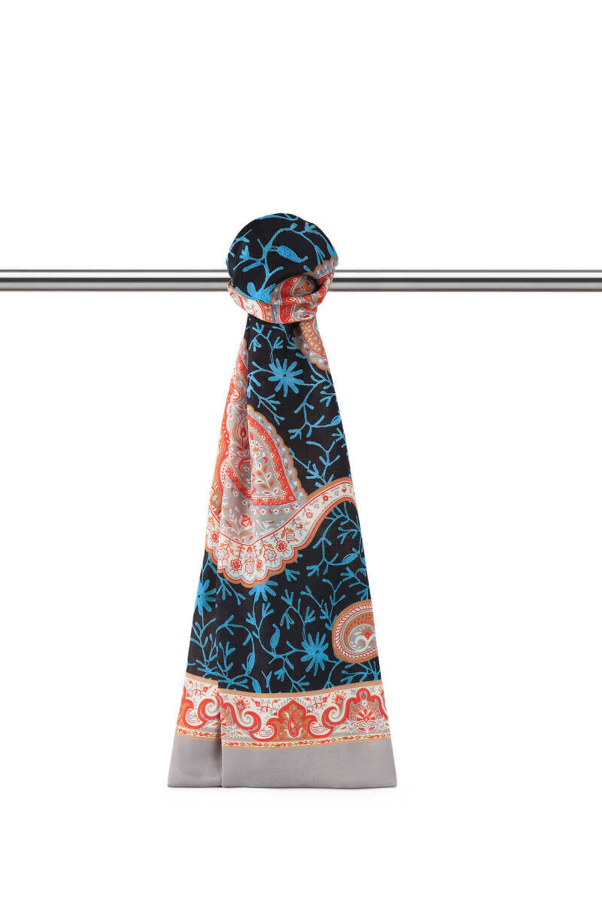 Bursa İpek Gray Paisley Pattern Soft Shawl features