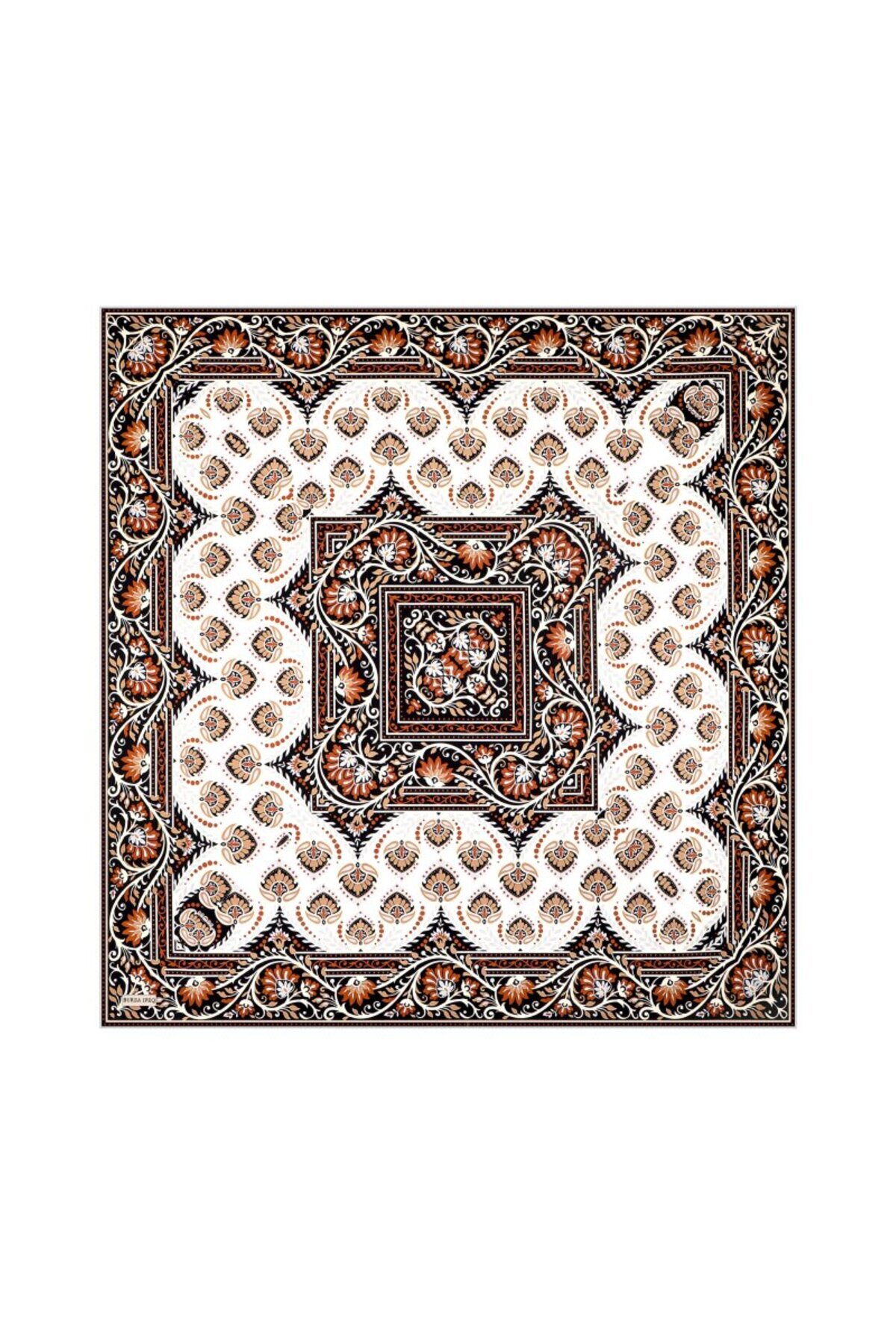 Bursa İpek Tile Crown Pattern Twill Silk Scarf features