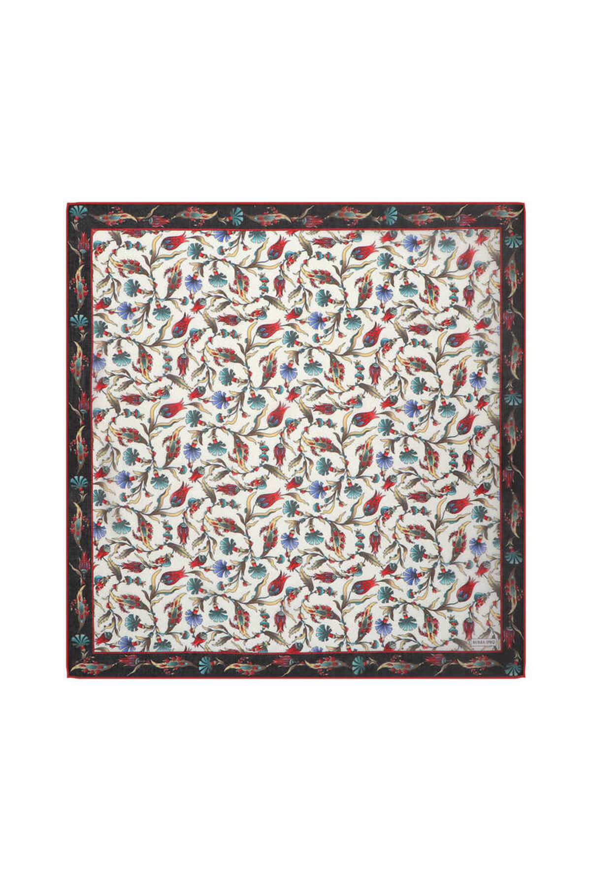 Bursa İpek Tulip Patterned Black Soft Scarf features