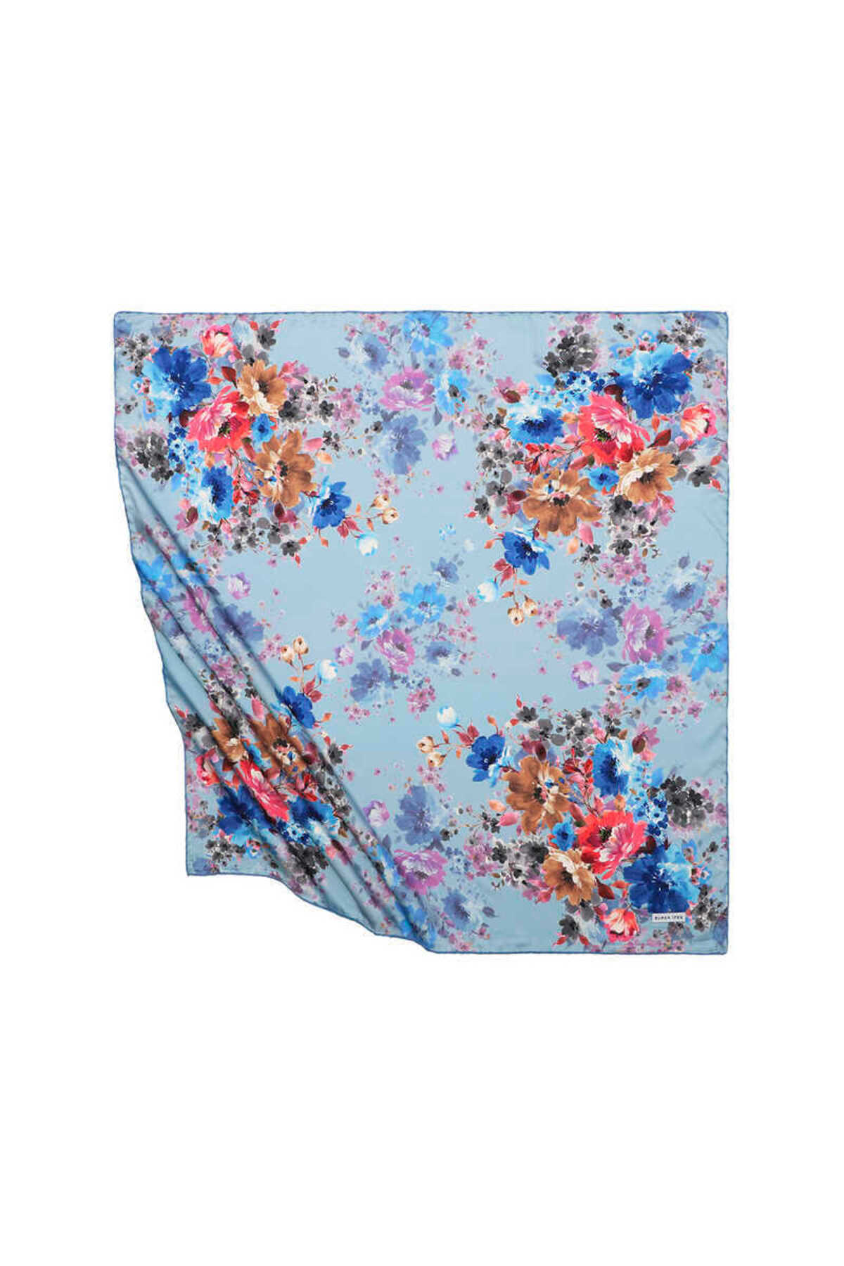 Bursa İpek Turquoise Geranium Pattern Silky Scarf features