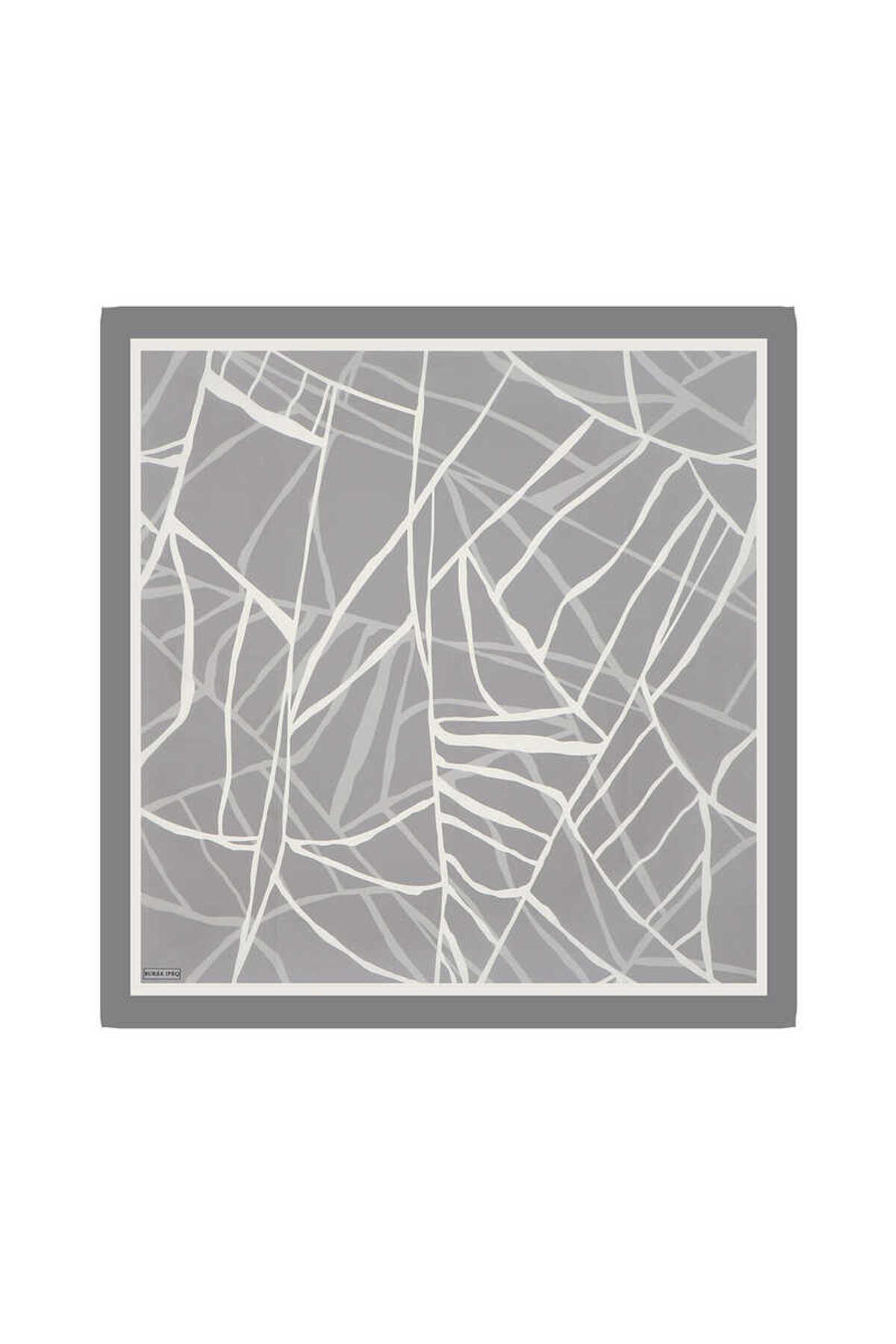 Bursa İpek Twill Silk Scarf - Gray Mosaic Pattern features
