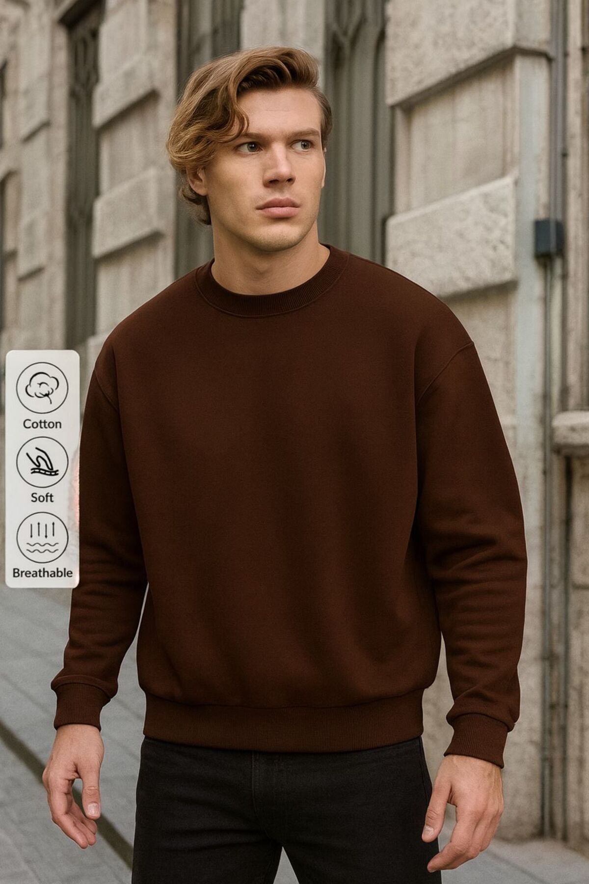 BW Bravely Wear Men's Solid Basic Circular Neck Sweatshirt features