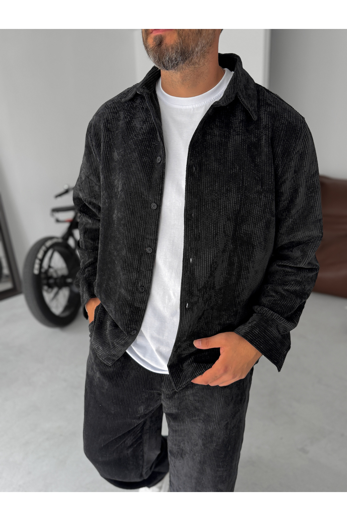 BYBASICMAN Black Basic Velvet Shirt Tw-7001 features