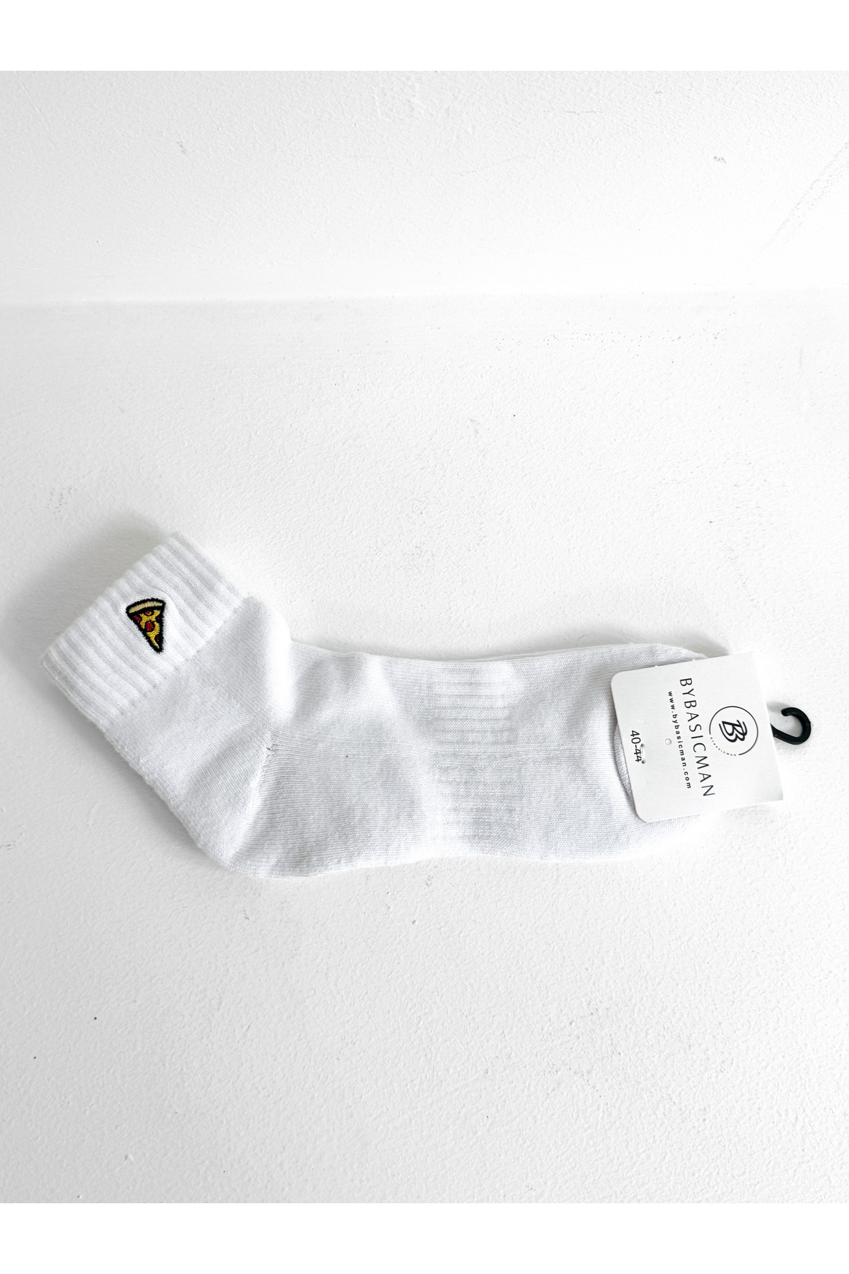 BYBASICMAN White Pizza Embroidered Half Socks features