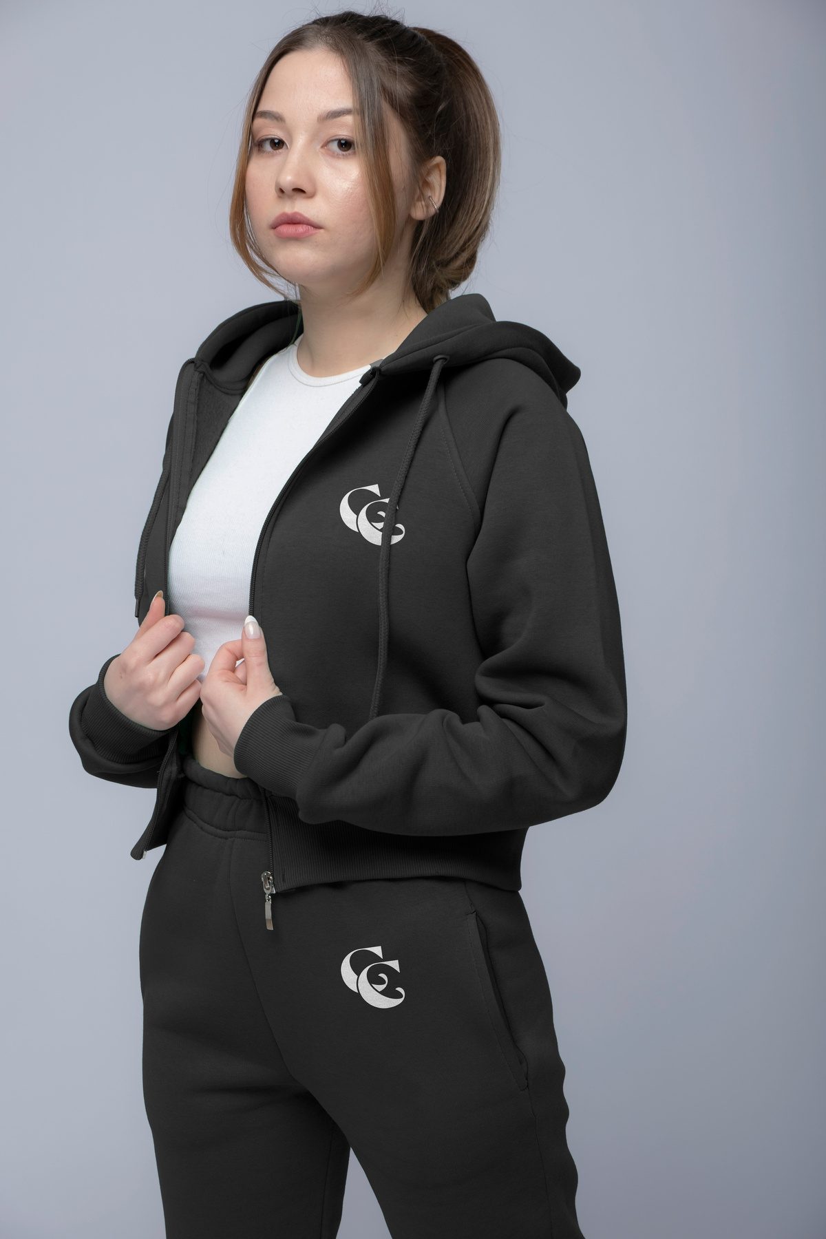 C&C OKULCUNUZ Winter Black Tracksuit Set - 3 Thread Printed Basic Model features