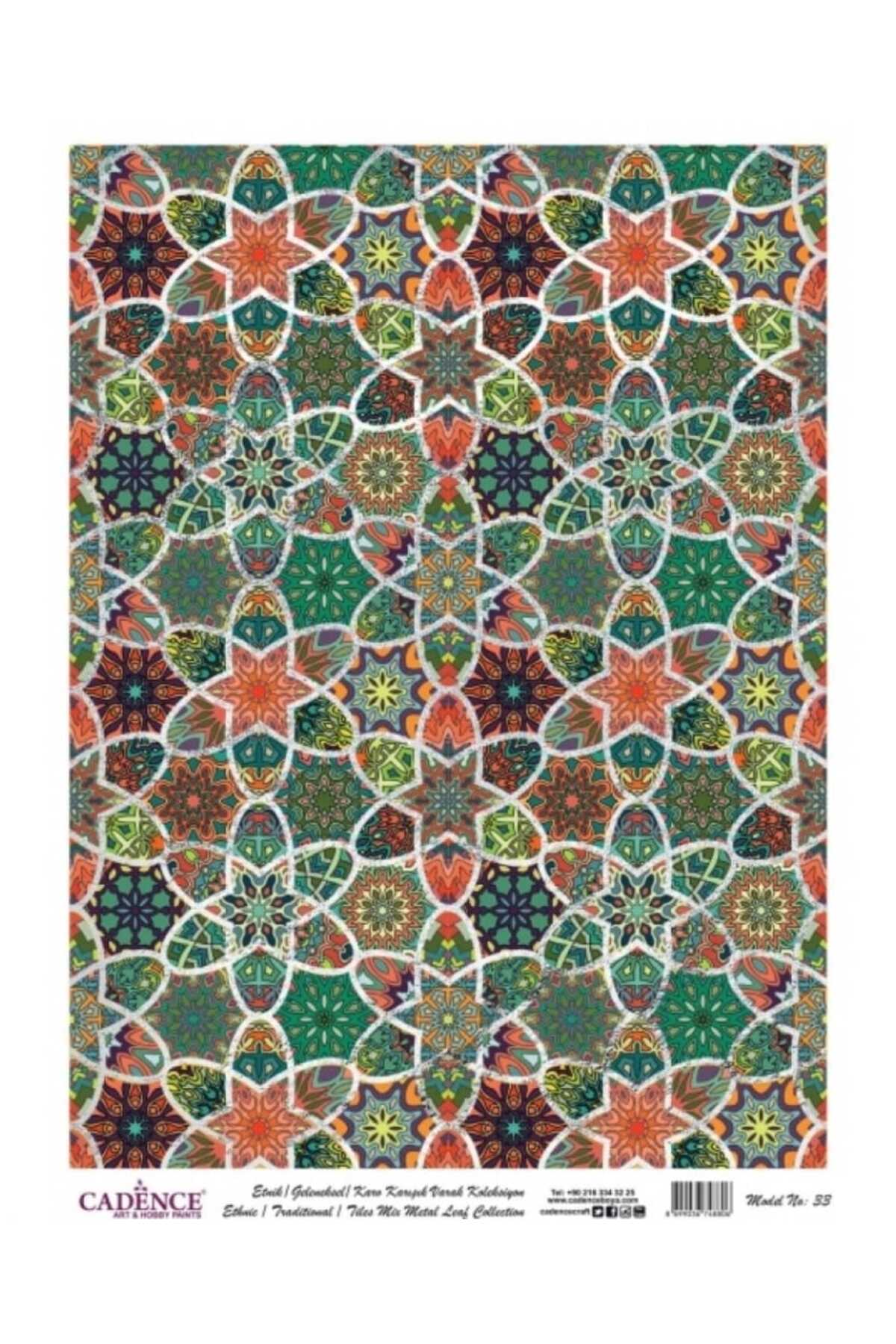 Cadence Brass Patterned Silver Foil Decopage - Model 33 features