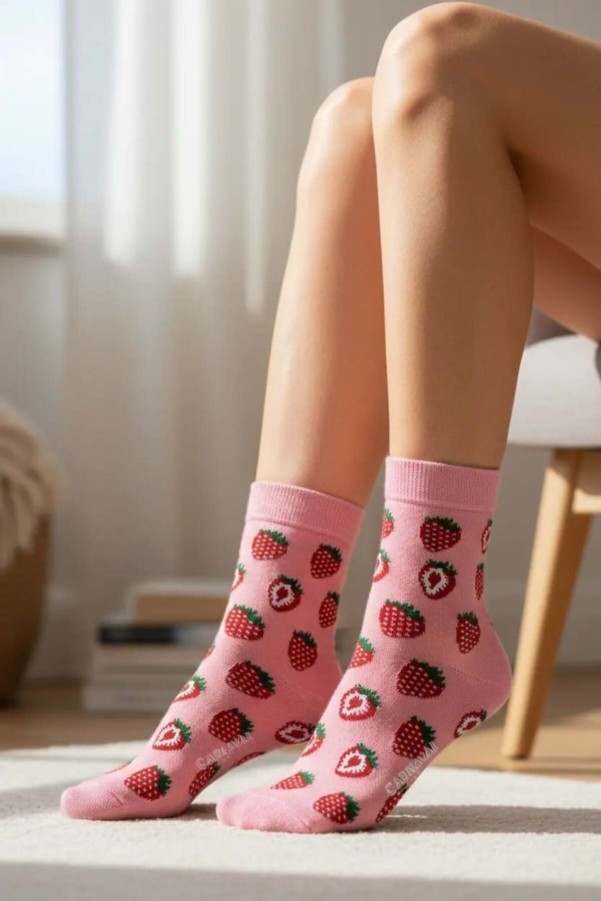 CANMODA Pink Strawberry Patterned Socks (Suitable for Size 36-44)