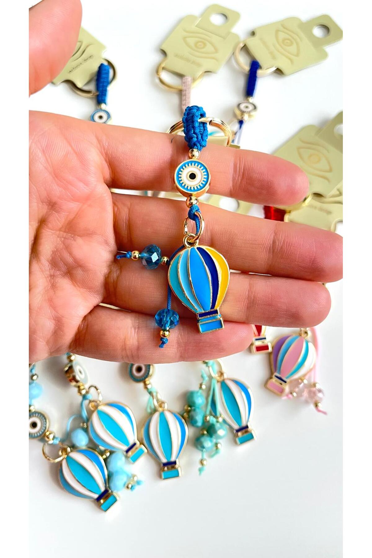 Cassime Blue Colored Balloon Patterned Evil Eye Beaded Keychain features