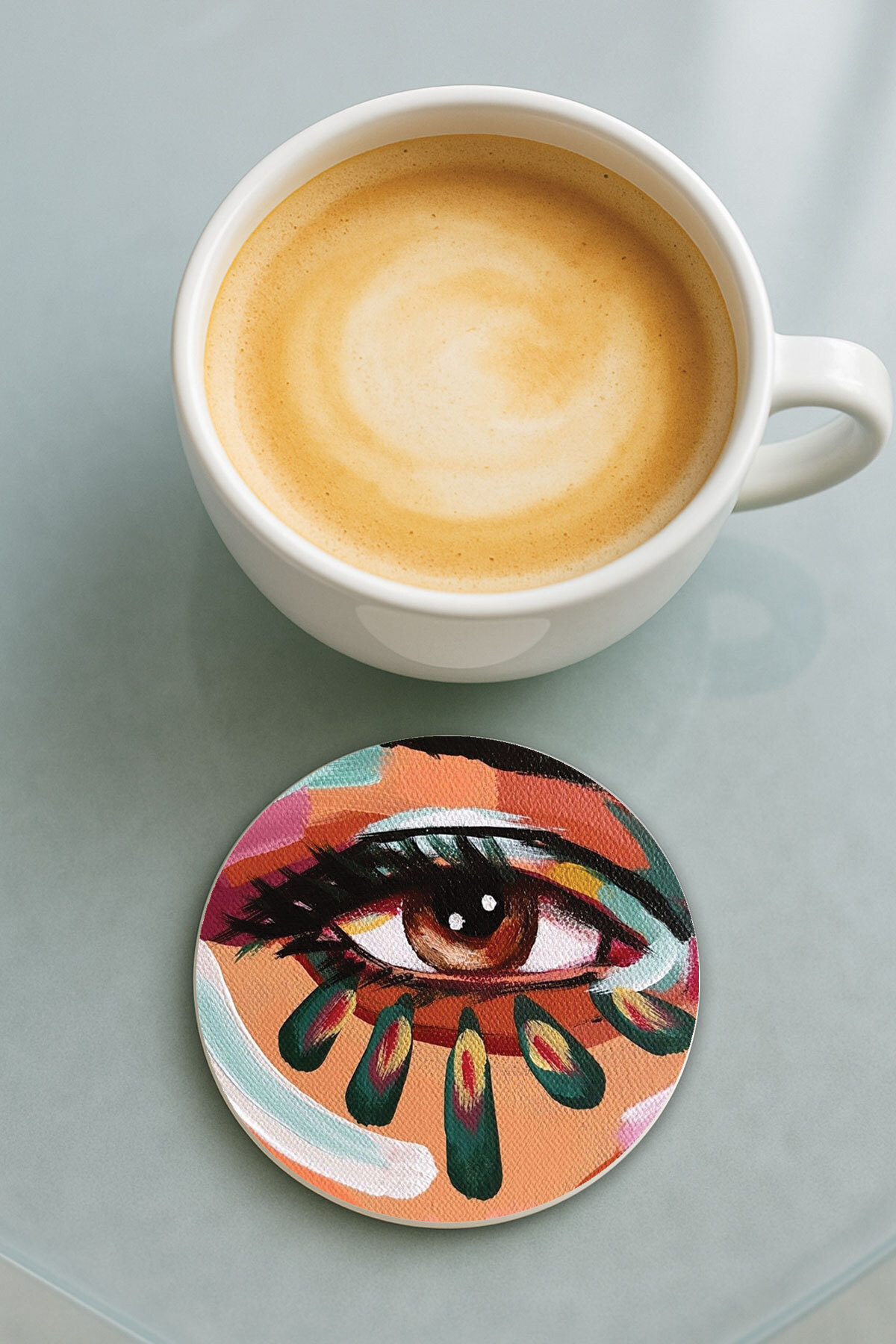 Cekuonline Round Plexiglass Coaster with Printed Pattern Single Artdeco