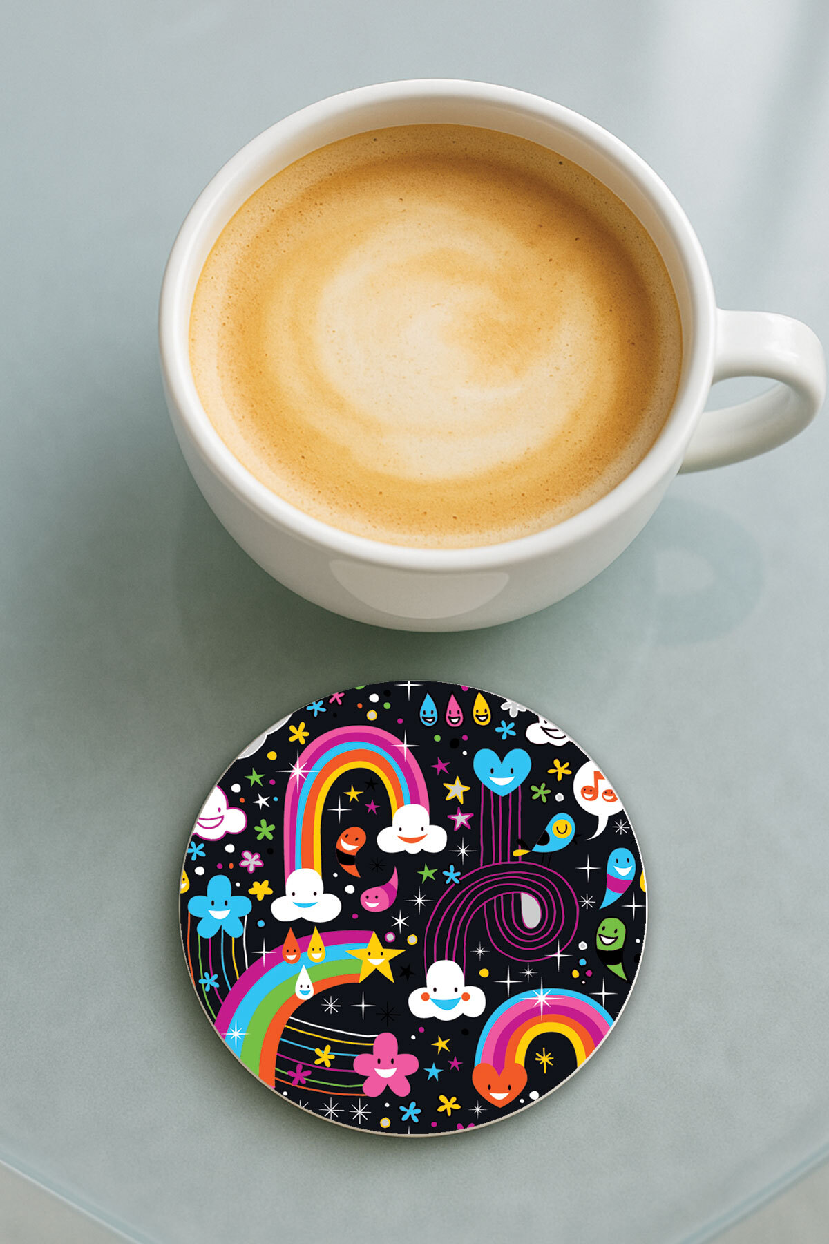 Cekuonline Round Plexiglass Coaster with Printed Pattern Single Rain Drops features