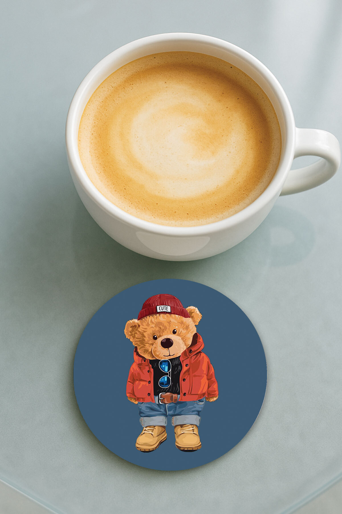 Cekuonline Round Plexiglass Coaster with Printed Pattern Single Teddy/Bear features
