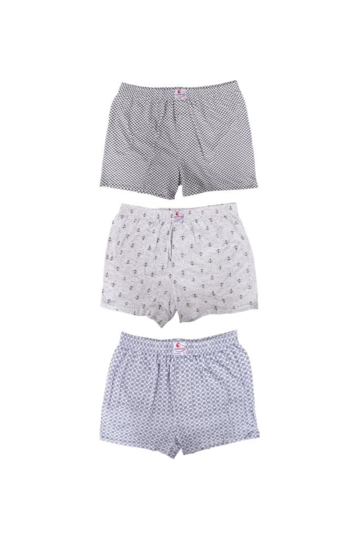 CENNETOĞLU Men's 3-Piece Mixed Patterned Buttoned Comfortable Boxer Shorts