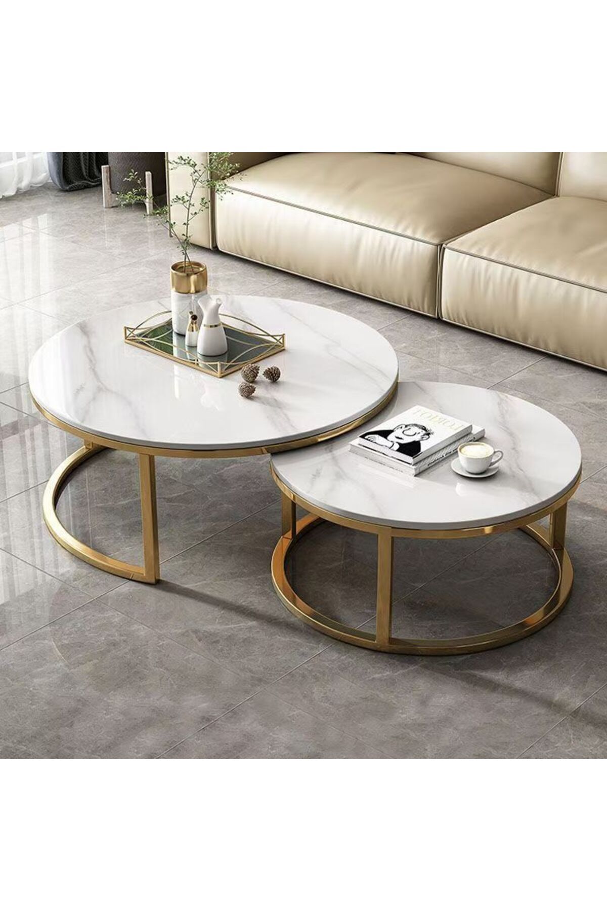 Ch Two service tables for the lounge and reception area with a gold base and modern design. features
