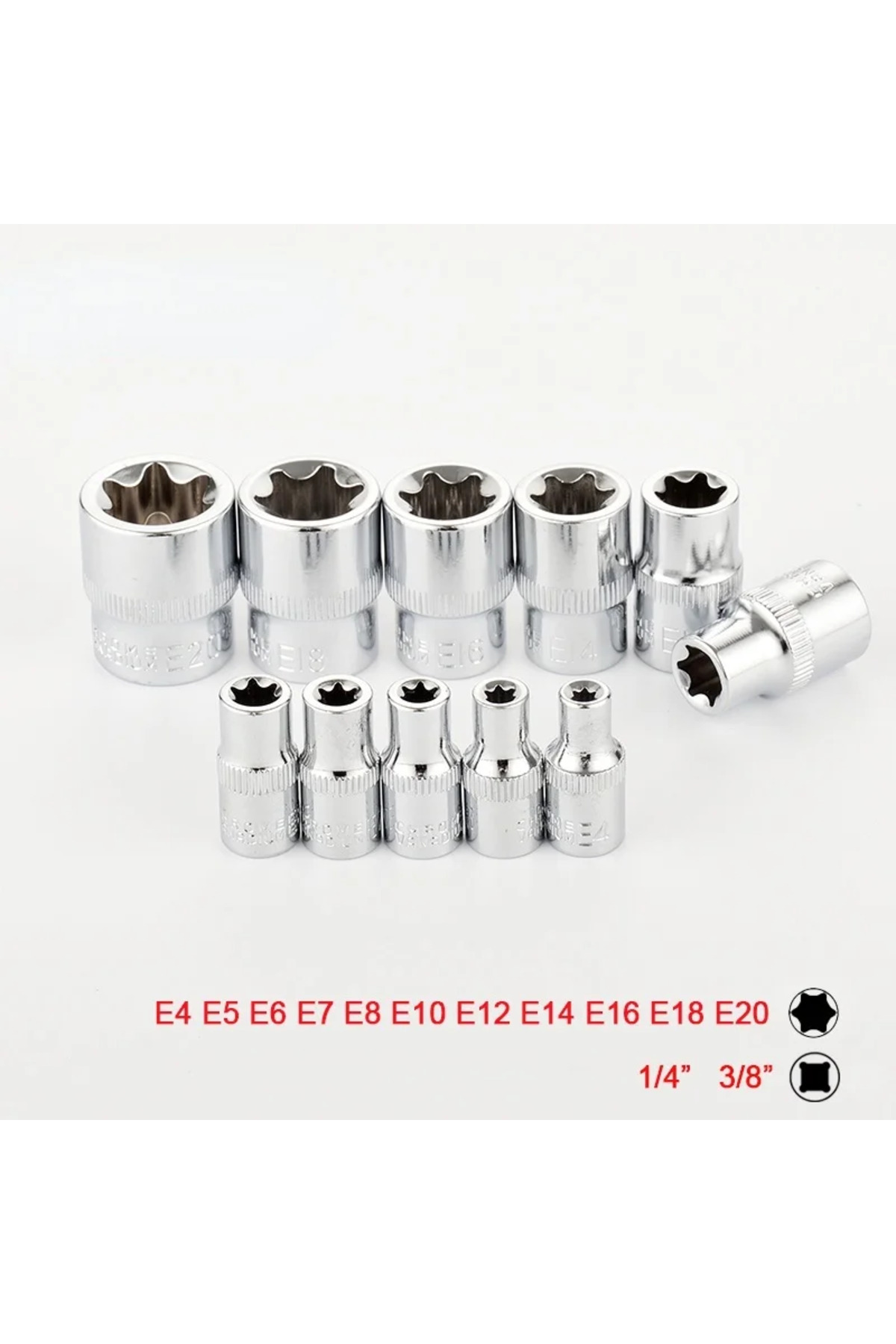 Choice 11Pcs 1/4" 3/8" Star Socket Set Femal E Type Sockets Wrench Head E4 E5 E6 E7 E8 E10 E12 E14 E16 ...
