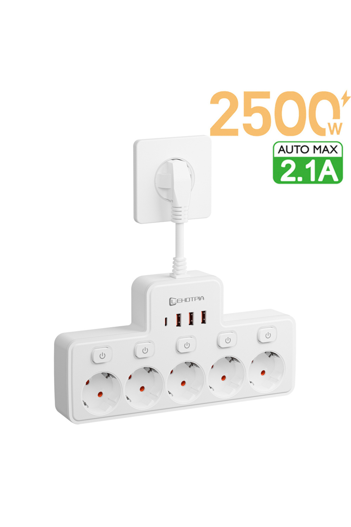 Choice EU White EU Plug 5 AC Power Strip Wall Mounted Independent Switch Socket European Standard Plug Netw features
