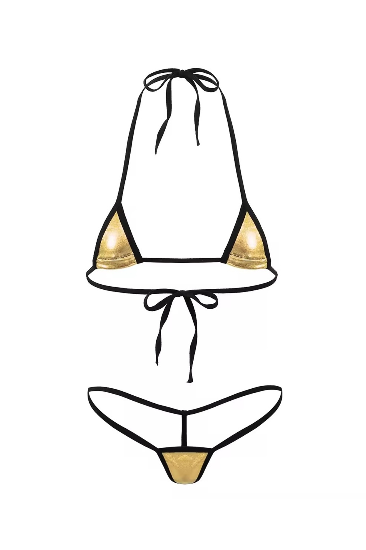 Cicişim Yellow Leather Look Drawstring Bikini Set features