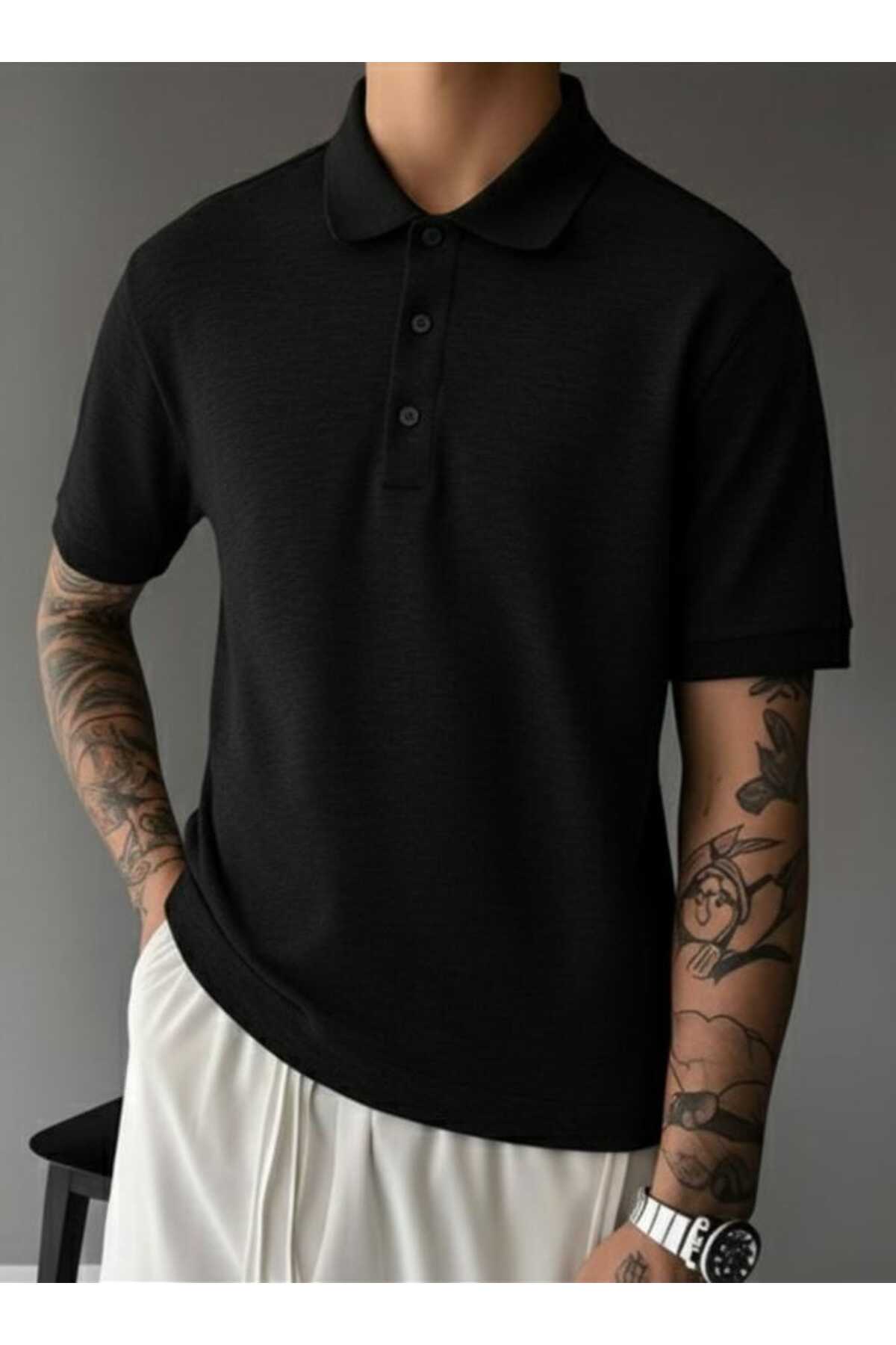 CLASSY.MODA Men's Oversized Polo Neck Solid Color Basic T-Shirt features