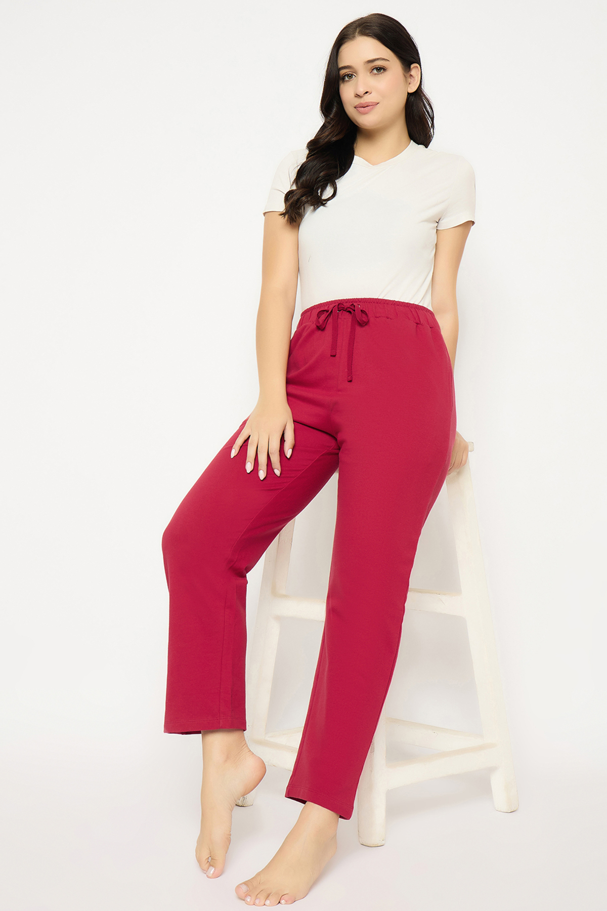 Clovia Chic Basic Pyjama in Maroon - Cotton