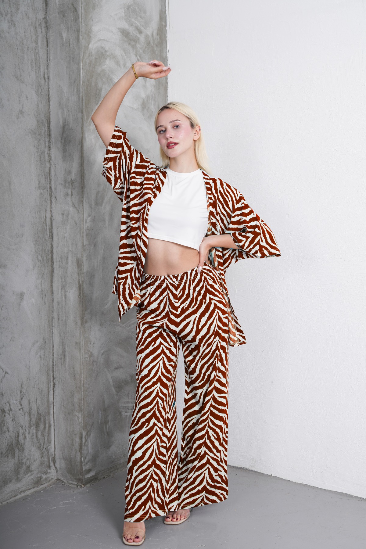 Clyfora Zigzag Patterned Kimono - Crop Set features