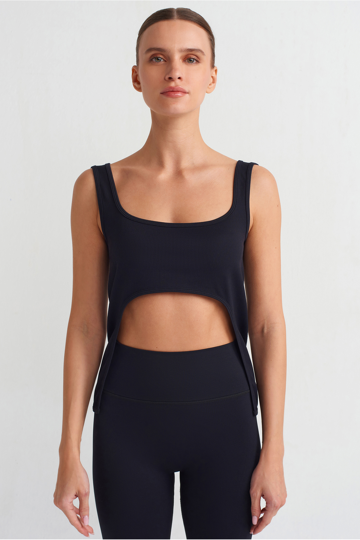 COMEUP Open Front Slim Ribbed Undershirt Black features