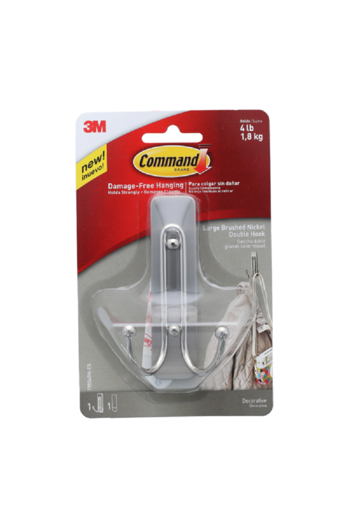 COMMAND Large Brushed Nickel Double Hook Silver 1.8kg features
